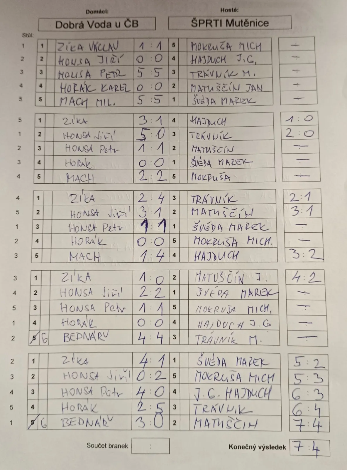 | 4. | ŠPRTI Mutěnice | 4 | 29:31 | 4 |