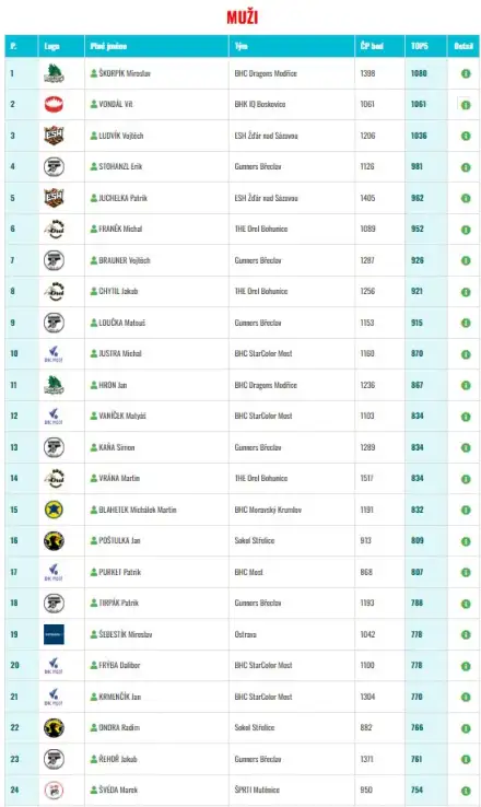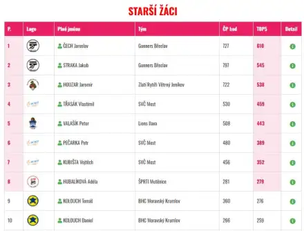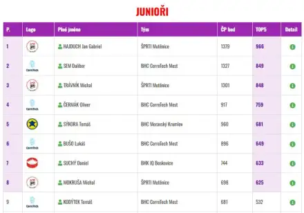 V brněnských Bohunicích se včera hrál poslední turnaj Českého poháru, který vyhrál Vojtěch LUDVÍK z ESH Žďár nad Sázavou. Naši Šprti potřebovali ještě body k postupu na mistrovství ČR. Úplně nejlépe se turnaj podařil Markovi Š., který s bilancí 4-2-1 obsadil 12. místo z 79 účastníků. Za toto pěkné umístění získal 207 bodů do Českého poháru a to mu pomohlo, aby celkově obsadil poslední 24. postupové místo s náskokem 11 bodů! Gratulace k nečekanému úspěchu. Celkově se nedá říci, že by někdo z naší výpravy v Brně výsledkově propadl. Každý vyhrál minimálně 3 zápasy ze sedmi možných. Velká pozornost se upírala na Adélu H.. Ale dokázala to, a i ona 3x vyhrála. Získala 119 bodů do ČP a o 3 body tak zachránila postup na MČR z poslední možné pozice. Postupuje i Adriana N., která měla celý rok dobré výsledky. Ve veteránech byl Petr Š. v ČP celkově druhý a postupuje. V juniorech jsme z našeho týmu nejsilnější. Jan G. H. vyhrál podruhé Český pohár ( předtím i v žácích), Michal T. byl bronzový a Michal M. se kvalifikoval také z poslední postupové pozice na MČR a posledním turnajem. Na tomto turnaji ČP jsme včera nezískali žádnou cenu v kategoriích, ale ty postupy na MČR pro nás mají velkou hodnotu. Opět postupuje 7 hráčů Šprti Mutěnice na mistrovství ČR, tentokrát hraného v Břeclavi. Tak ať to zacinká a ať máme třetího mistra ČR. Závěrem chci ještě pogratulovat Michalovi T. k postupu na finále Masters, které mu včera soupeři nedokázali vzít. I tady se začínáme prosazovat!
