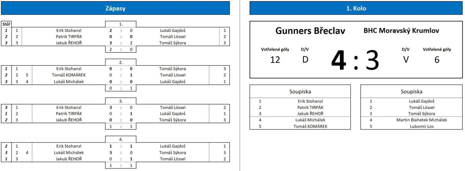 Ano, letos jsme obhájili prvenství v soutěži družstev Grand PRIX ! A v celkovém součtu s finále jednotlivců dospělých a žáků se dá říci, že jsme tuto soutěž GP ovládli. Žáky vyhrál počtvrté za sebou J. G. Hajduch, dospělé vyhrál M. Švéda a nyní družstva náš tým podruhé ! Skvělá práce týmu ! Ale jak k tomu došlo? Do Břeclavi se vydalo 5 Šprtů autem v sobotu 22/11/2025. V prvním zápase jsme pískali duel vítěze základní části Břeclavi proti týmu Moravského Krumlova. Oba týmy jsou ve finále družstev poprvé a favorit byl jasný. Tým plný "nováčků" hodně trápil zkušené hráče Břeclavi a nakonec to nestačilo. Gunners Břeclav zvítězili 4:3. V dalším souboji hrál poražený tým M. Krumlova proti nám, Šprtům. A tady se mutěnickým dařilo. Od samého začátku diktovali tempo a úspěšně si zahráli nakonec i náhradníci. Výhra 7:1 byla přesvědčivá. Bylo nám jasné, že dle podmínek soutěže nám stačí i remíza s Břeclaví, abychom vezli domů vítězný pohár. A tak se taky hrálo. Čekalo se na chyby soupeře. Po dvou směnách byl vyrovnaný stav, ve třetí směně jsme šli do jednobodového vedení, které jsme v té poslední, čtvrté směně, udrželi. Za to jsme dostali na krk medaile a převzali pohár, vše označené jedničkou! To vše zdokumentované v Galerii fotek.
