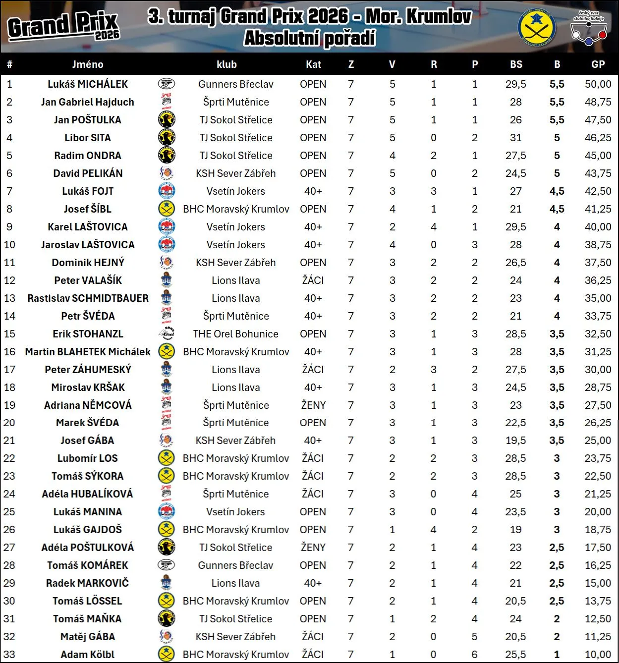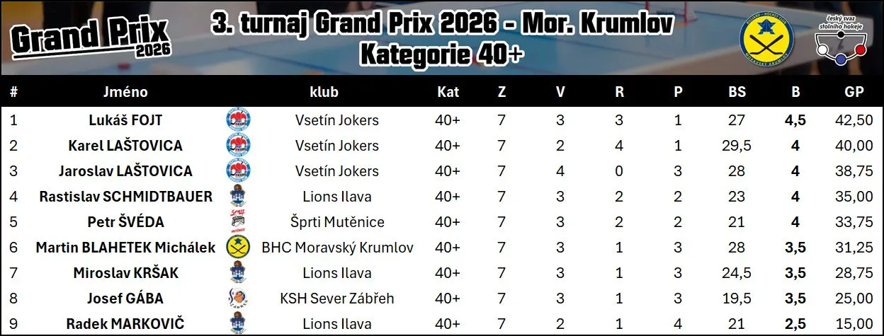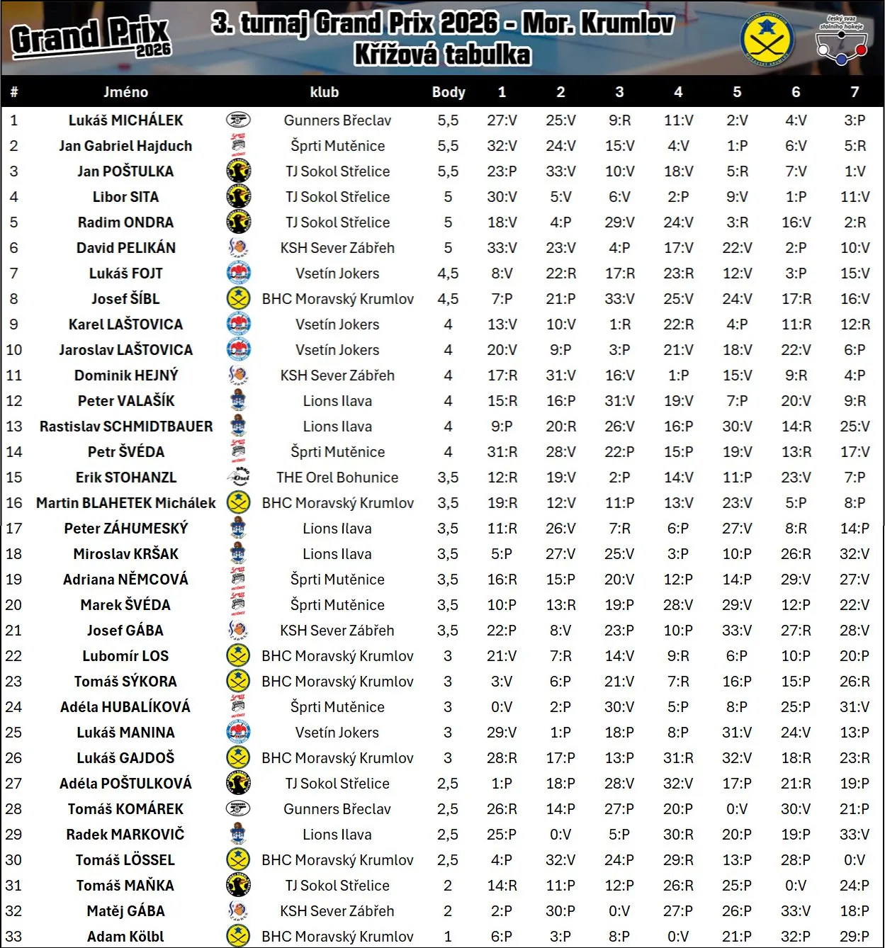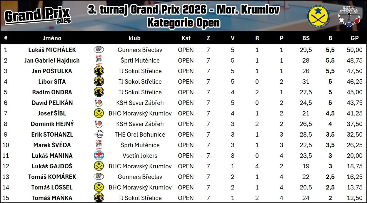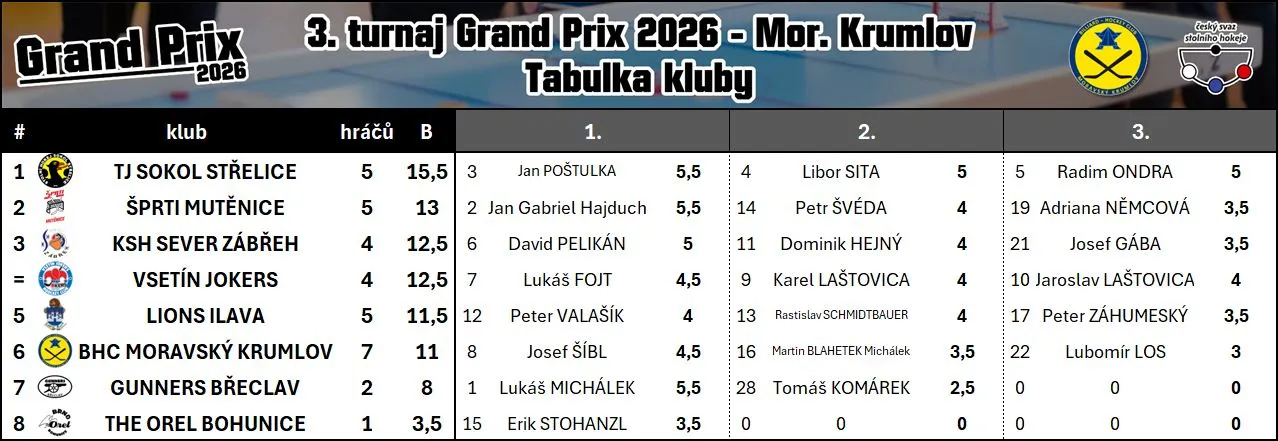 Třetím turnajem pokračovala série Grand Prix v Moravském Krumlově a dostavilo se 33 hráčů. Z mutěnické výpravy se dařilo nejvíce Pinďovi, jemuž uteklo vítězství o pomocné body soupeřů, protože hned 3…